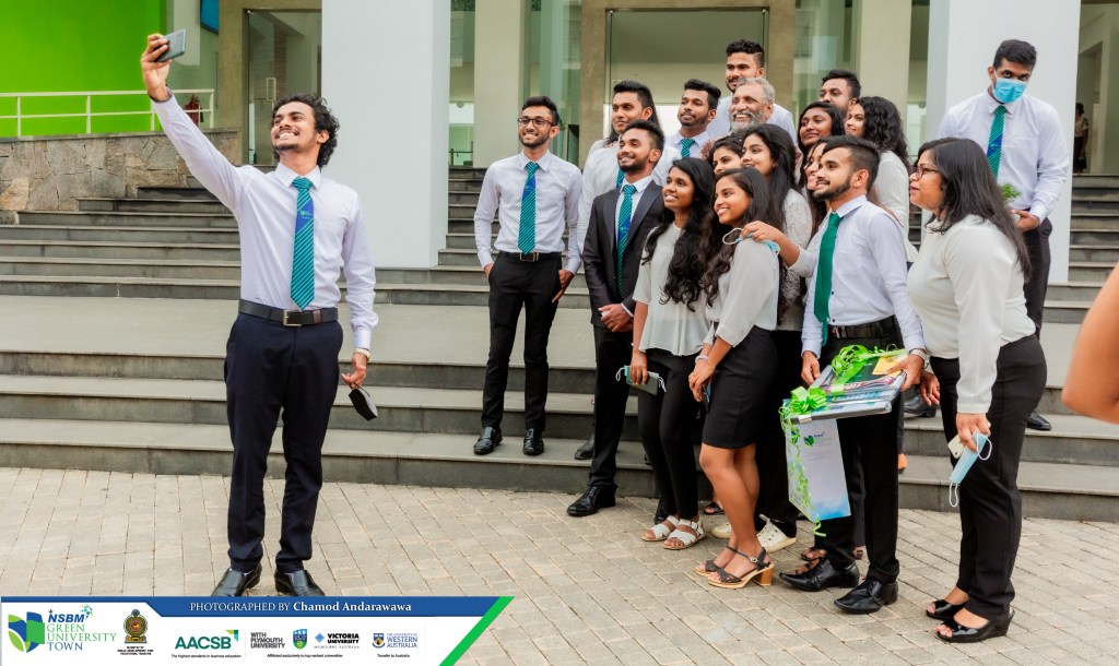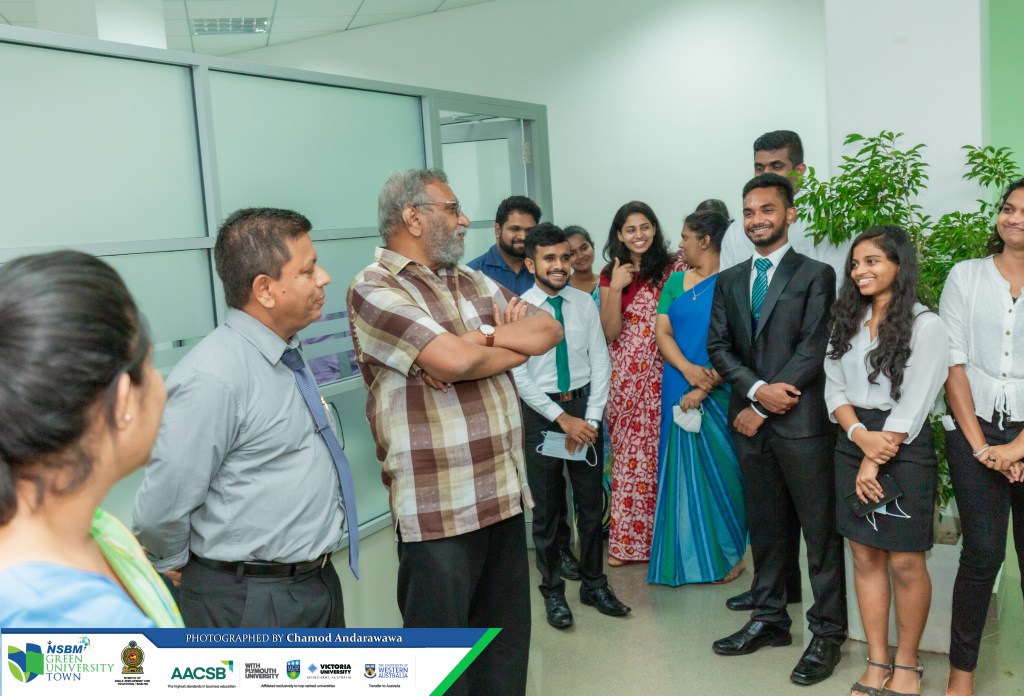 Mr. Mahinda Deshapriya posed to some official photographs with NSBM staff and students followed by a NSBM tour before he leaves the University.